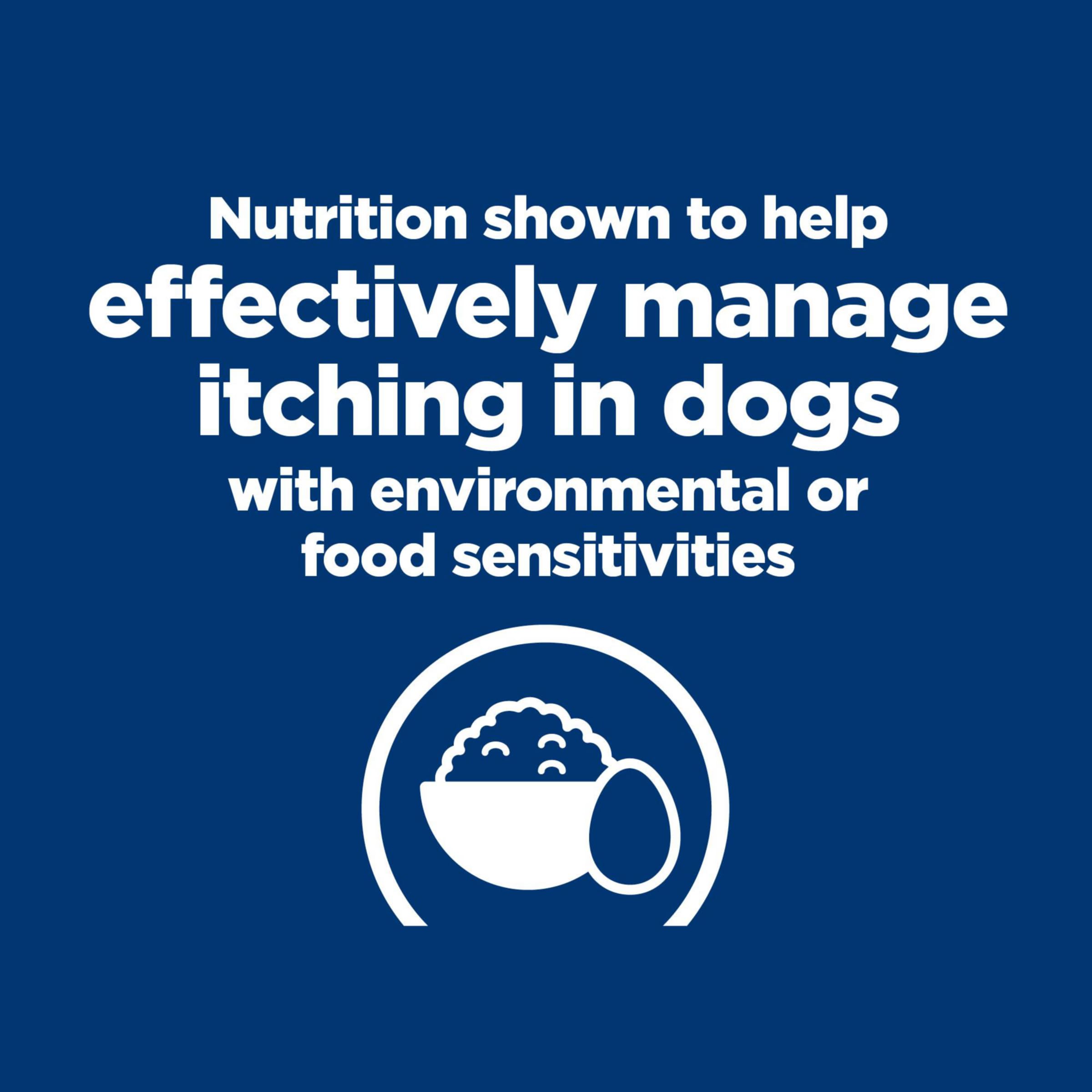 - Hill's Prescription Diet Derm Complete Environmental & Skin Sensitivities Rice & Egg Recipe Dry Dog Food is specially formulated by Hill’s nutritionists and veterinarians to help manage your dog’s environmental or food sensitivities.